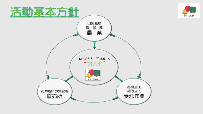 | 設立基本理念 | 働く場所があり、 生活できる糧があり、 心休まる家があり、 気の合う友達がいる。 |